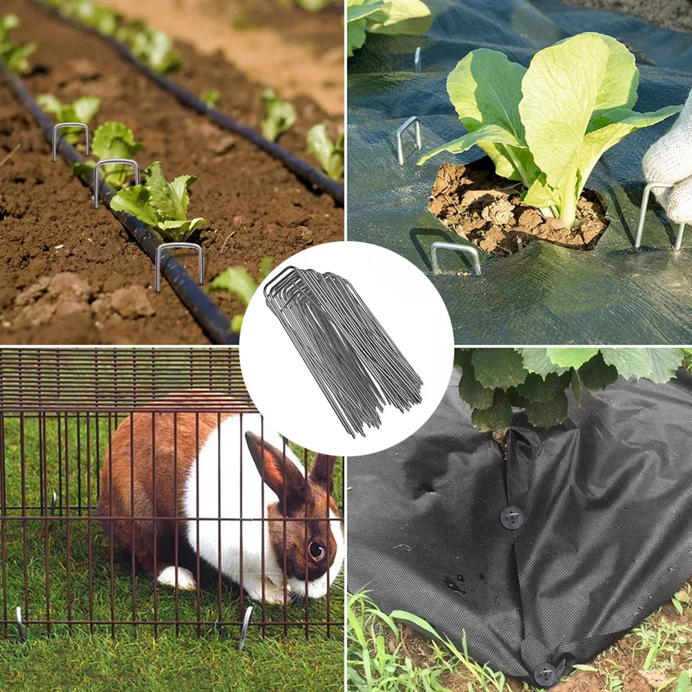 • Secure: U-shape design grips firmly in soil to hold down landscape fabric, netting, or other outdoor applications.